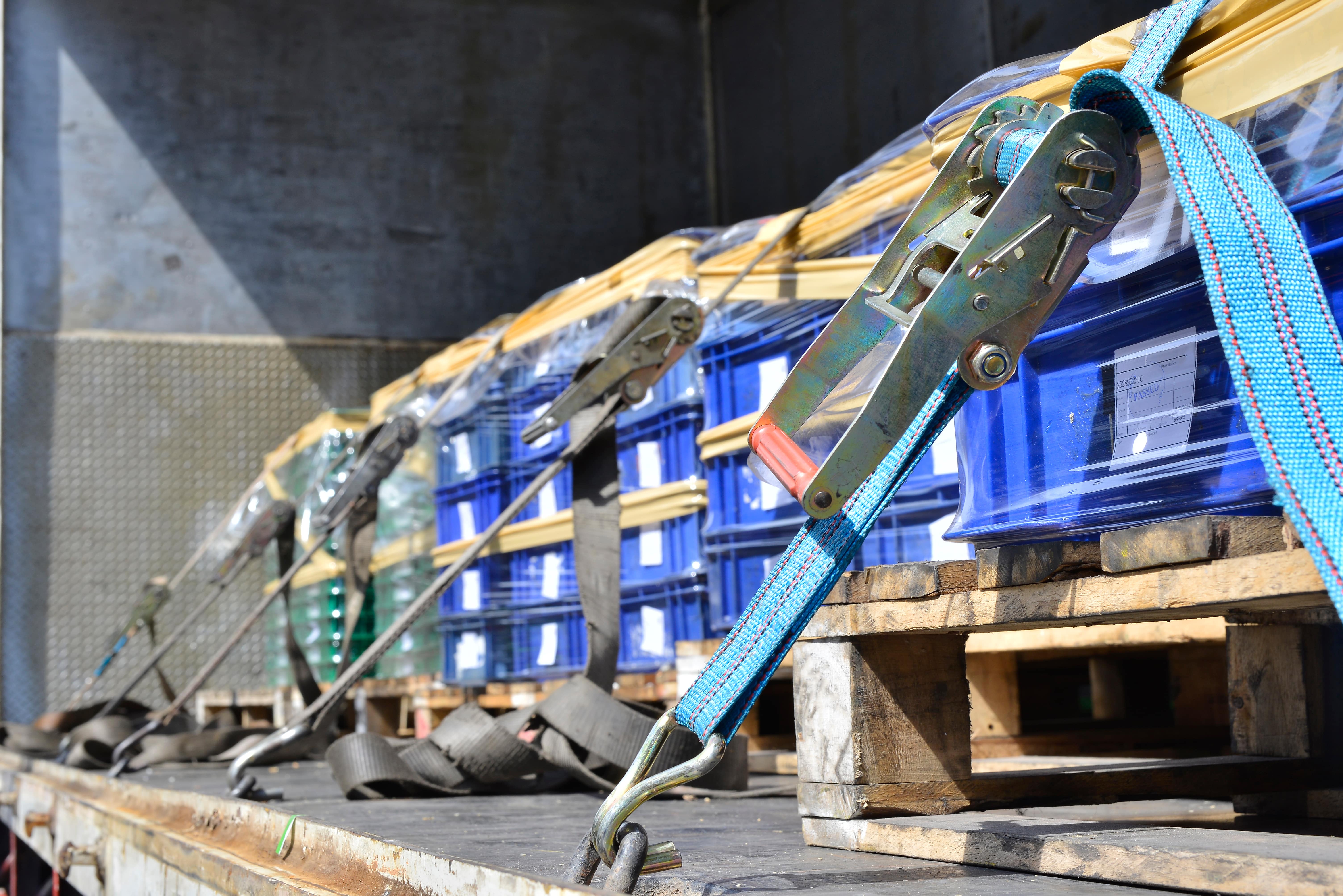 A cargo restraint approach gives you load security by increasing pressure between your cargo and the surface it is loaded on. This pressure is generated with the use of lashing equipment which pulls down on your load to keep it in place with friction against the floor. While these are the main methods that we use to secure goods in transit, keep in mind that it is your responsibility to make sure your cargo is safely secured within your vehicle or container to avoid moving around.